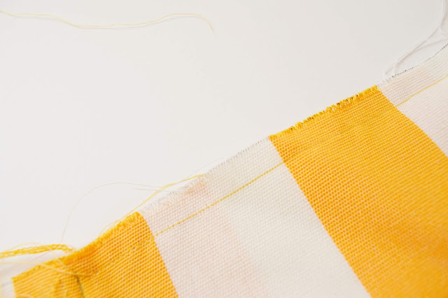 Couds maintenant l'angle que nous avons découpé en étape 3 (les deux angles du tissu à rayures mais aussi ceux du tissu jaune.